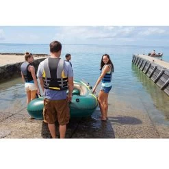 Bateau pneumatique pour 4 personnes avec coussins gonflables Ă l’arrière pour plus de confort..