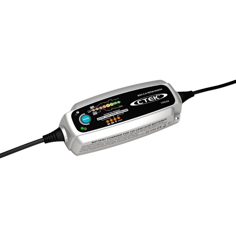 Le chargeur de batterie MXS 5.0 Test & Charge de chez Ctek est conçu pour ĂŞtre utilisĂ© avec n’importe quelle batterie de 1,2 Ă 110 Ah. Il dispose de trois programmes qui permettent de tester la tension de la batterie, sa puissance de dĂ©marrage ainsi que les performances de l’alternateur de façon Ă fournir un portrait clair et complet de l’Ă©tat de la batterie. Il intègre Ă©galement un programme automatique de dĂ©sulfatation brevetĂ©, un mode Recond pour le reconditionnement des batteries très dĂ©chargĂ©es, mais Ă©galement le système Ctek qui fonctionne par charge constante/impulsions : le système le plus efficace lorsqu’une batterie reste connectĂ©e pendant longtemps.