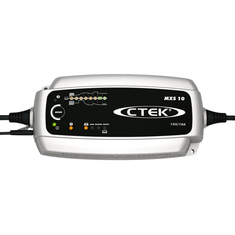 Le chargeur MXS 10 chez Ctek est complètement automatique. Il fournit 10 A aux batteries 12 V de 20 à 200 Ah et garantit une charge d’entretien jusqu’à 300 Ah. Il intègre un diagnostic de la batterie qui permet de savoir avec fiabilité si votre batterie est prête à recevoir et à conserver la charge. Il dispose également d’un mode Recond pour le reconditionnement des batteries très déchargées et stratifiées, ainsi que d’un programme « Flocon de neige » pour le chargement par temps froid. L’option AGM optimise la durée de vie de la majorité des batteries Stop and Start et le capteur de température permet une optimisation de la charge. Ce chargeur peut aussi être utilisé comme source d’alimentation pour les équipements 12 V.