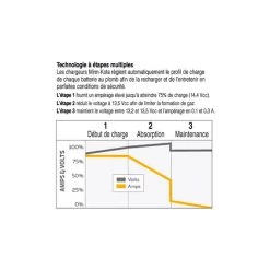 L’étape 1 : fournit un ampérage élevé jusqu’à atteindre 75% de charge (14,4 Vcc).