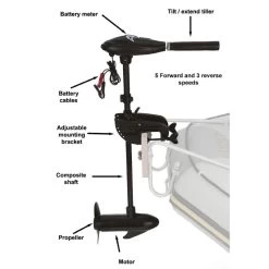 Moteur électrique pour bateau gonflable ou annexe rigide. Ce moteur dispose d’un excellent rapport qualité, il est utilisable autant en eau douce qu’en eau salé.
