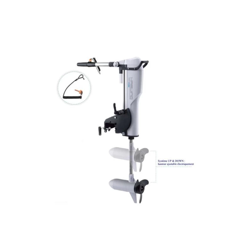 Sa poignée ergonomique à positionnement multi-angulaires est articulée selon une conception 2:1 pour un angle de braquage réduit et un meilleur confort de navigation. Son moteur puissant s’arrête automatiquement si l’hélice rencontre un obstacle. Léger et compact, il est facile à transporter et facile à installer. Utilisation en eau douce et eau de mer.