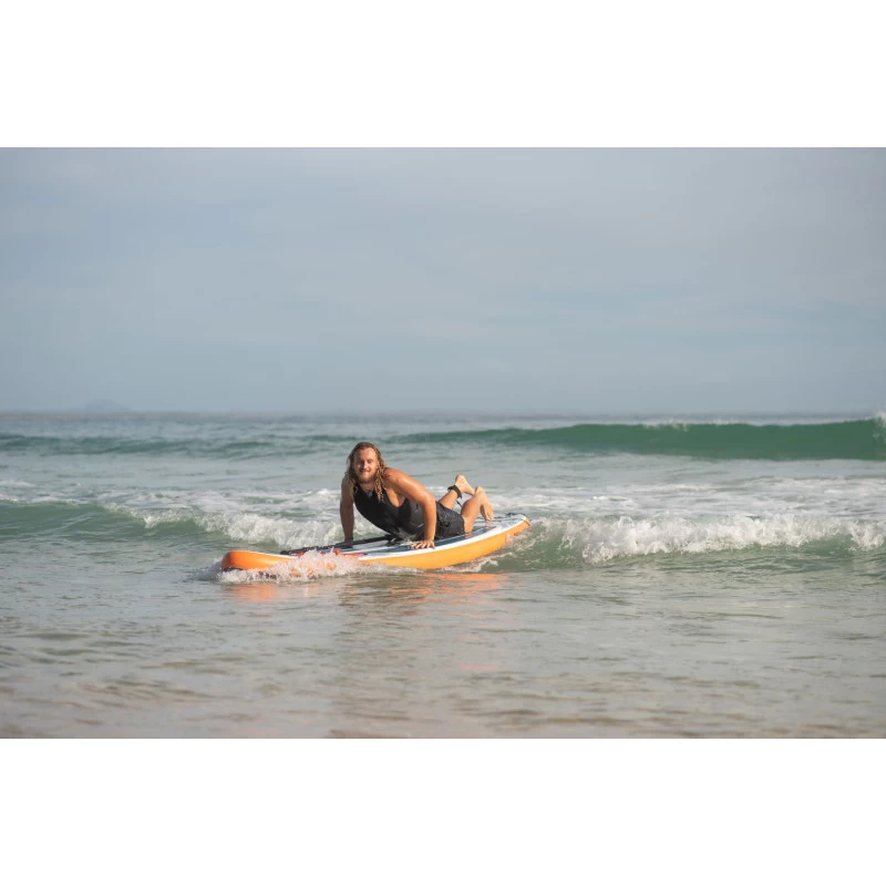Le paddle gonflable Aqua Marina Pure Air 10.10 est prĂ©sentĂ© avec un nouveau design. Ce SUP Paddle gonflable est un des meilleur rapport qualitĂ© / Prix du marchĂ©. Ce paddle est adaptĂ© aux gabarits jusqu’Ă 145 kg, grâce Ă ses 81cm de large et de 15cm d’Ă©paisseur. Ce paddle gonflable vous apportera stabilitĂ© et Ă©quilibre lors de vos balade